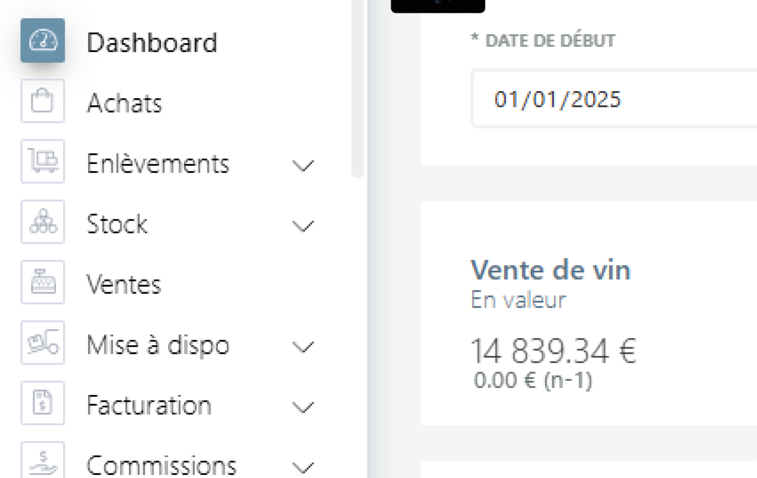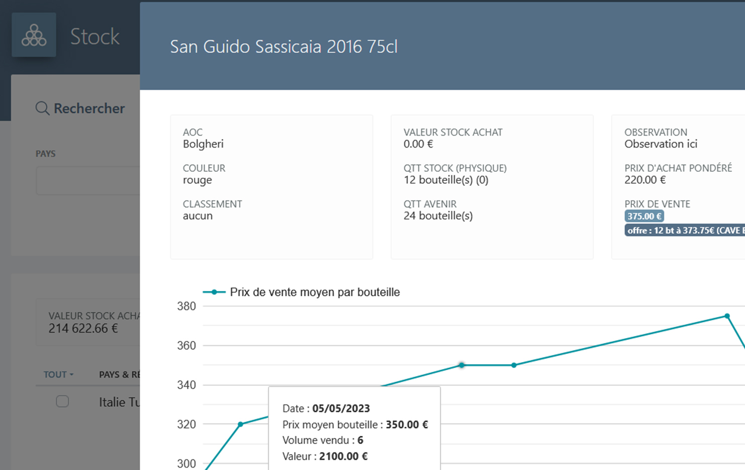 Analysez en un coup d'œil vos statistiques de tous types (achat, vente, chiffre d’affaires, utilisateur, vin, etc.) pour une gestion optimisée.