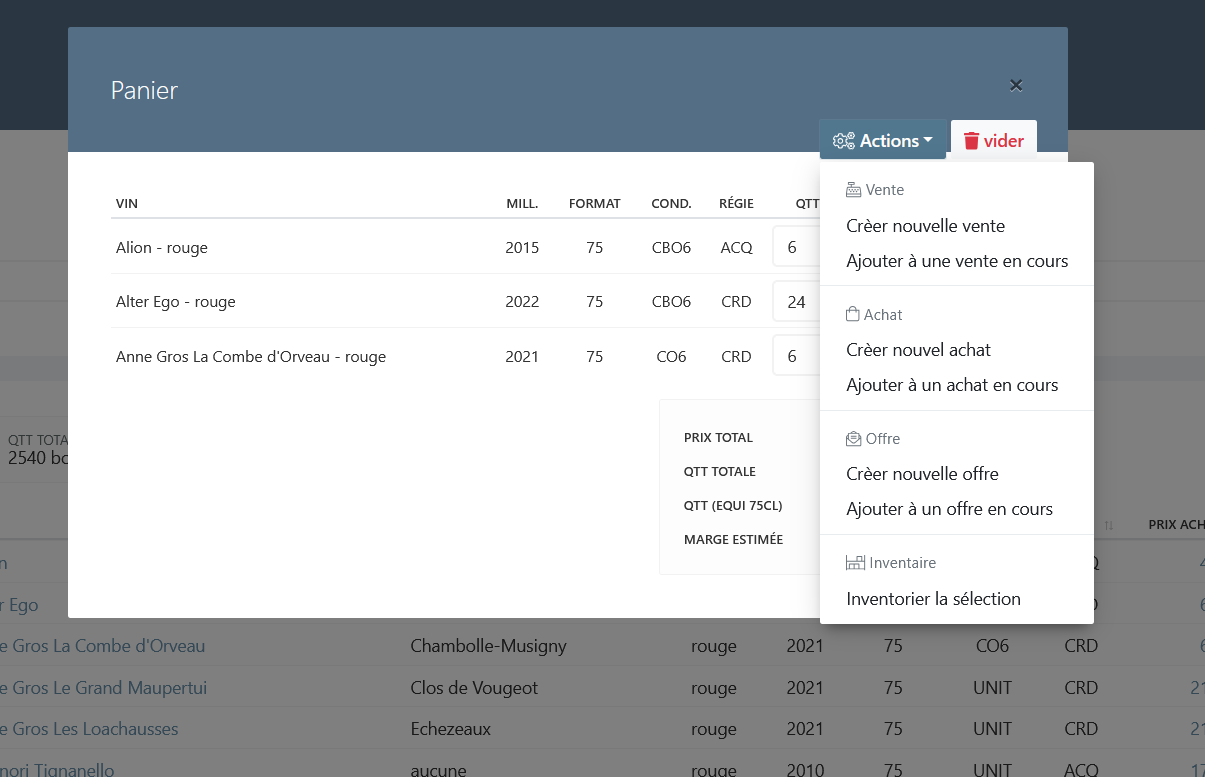 Depuis le stock, alimentez un panier central pour déclencher les actions essentielles du négoce — une approche aussi pratique qu’originale.